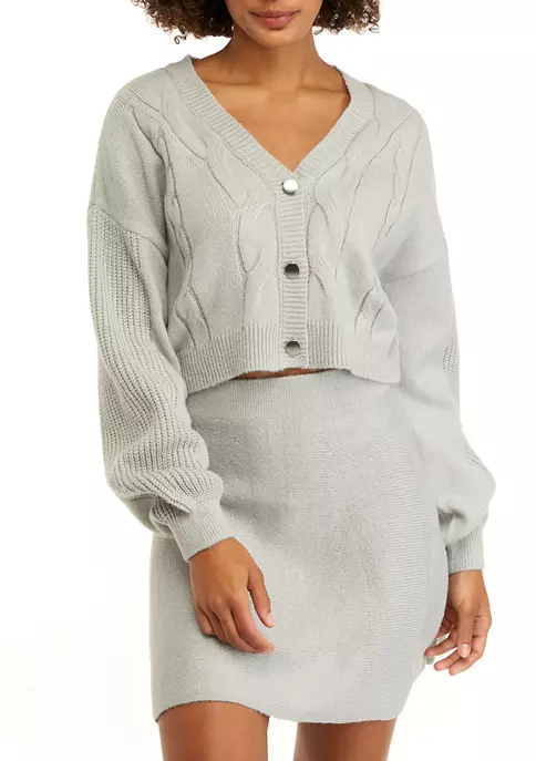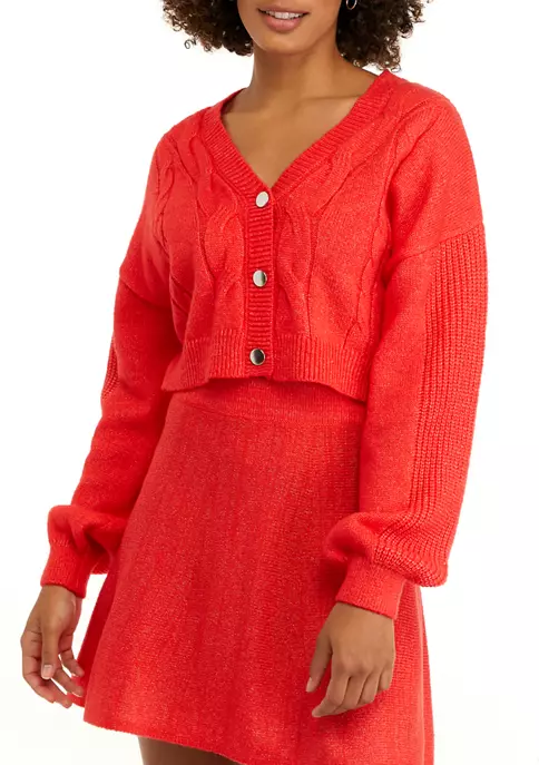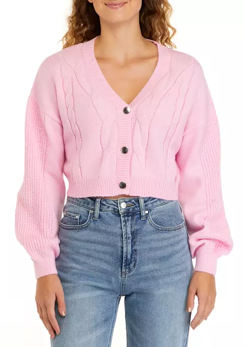 Cut in a cropped silhouette, this cozy cable knit cardigan from Cabana by Crown & Ivy™ is a comfy pick for chilly weather.