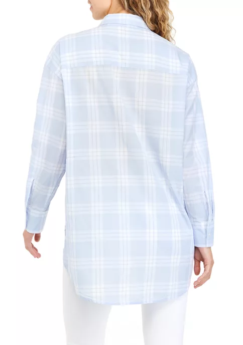 Finished in a drop back hem, this long sleeve button-down shirt from Cabana by Crown & Ivy™ has a masculine-inspired design with feminine details.