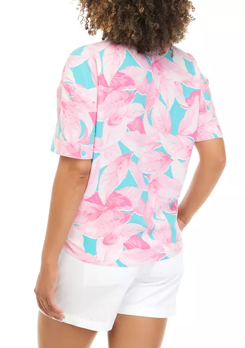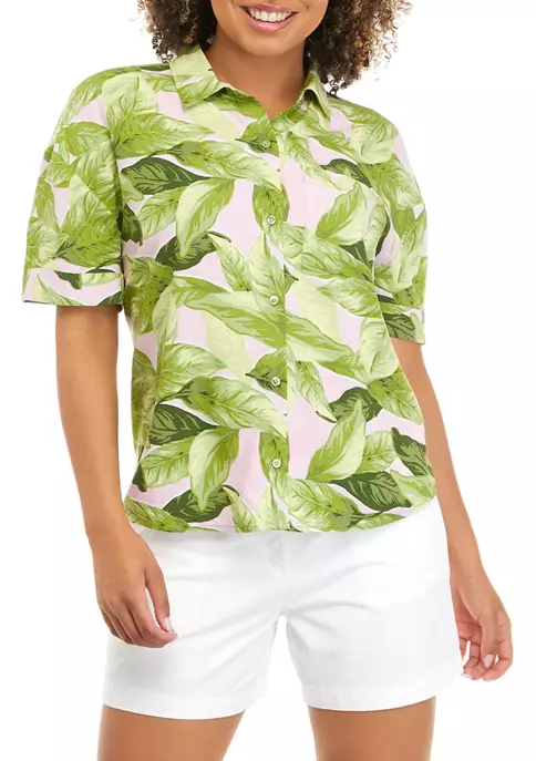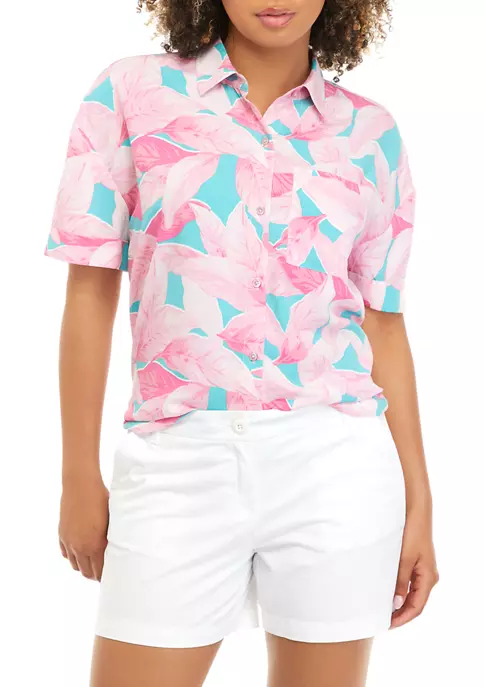 Updated with a preppy collar, this shirt from Cabana by Crown & Ivy™ is decked out in a retro palm print.