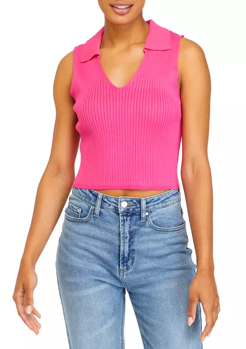 Textured in rib knit fabric, this sleeveless collared sweater from Cabana by Crown & Ivy™ is a versatile style that can be dressed up or down.