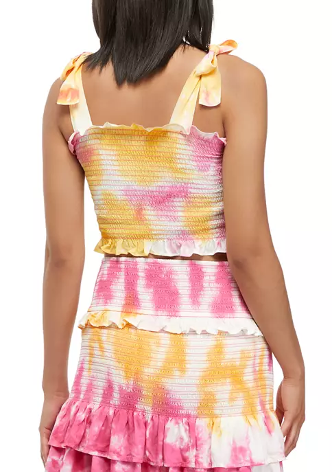 Flirty ruffle details accentuate this cropped, smocked top from Cabana by Crown & Ivy™.