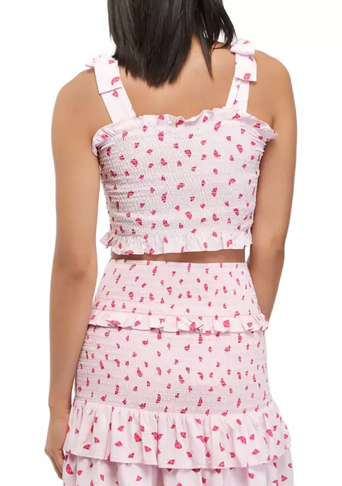 Flirty ruffle details accentuate this cropped, smocked top from Cabana by Crown & Ivy™.