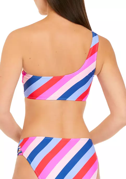 Vibrantly colored stripes perfectly punctuate the flattering fit of this one-shoulder swim top from Cabana by Crown & Ivy™.