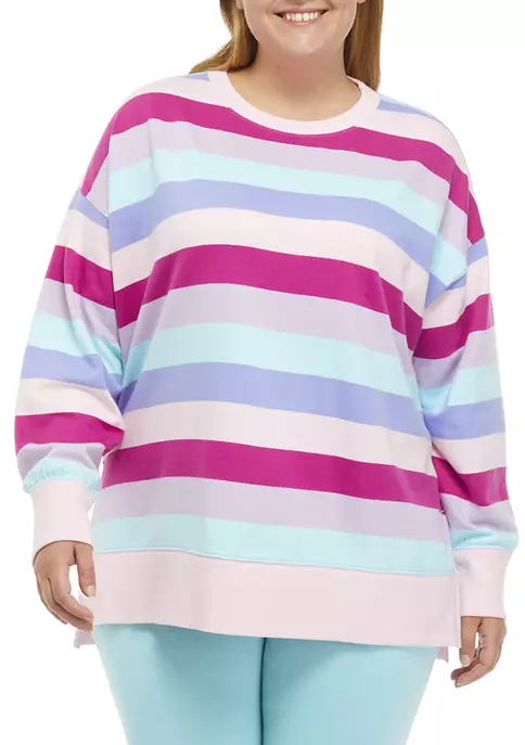 Emboldened by brightly colored stripes, this long sleeve sweeper top from Cabana by Crown & Ivy™ will add a touch of preppy style to your casual assortment.