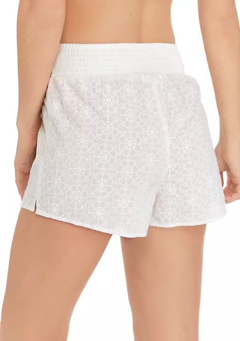 Crafted in eyelet fabric, these swim cover-up shorts from Cabana by Crown & Ivy™ are perfect for a preppy, beach-ready look.