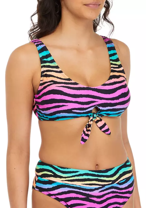Embellished with a tie-front accent, this swim bralette from Cabana by Crown & Ivy™ features a rainbow ground decked out in zebra stripes.