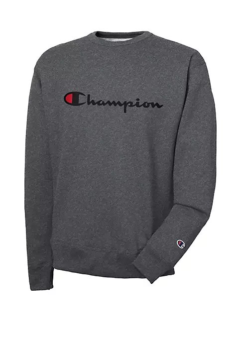 This crew neck sweater by Champion® boasts reduced pill and shrinkage qualities with extra stitched details for durability. Designed in comfortable fabric, this piece is great for throwing over joggers or jeans.