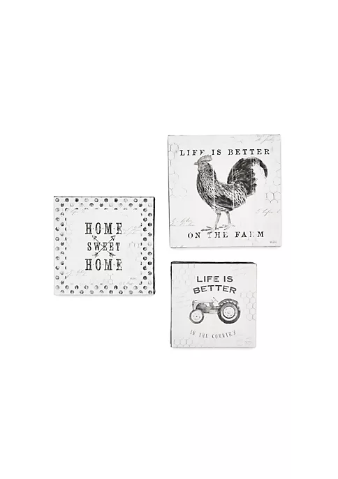 Mini Rustic Farmhouse Wrapped Canvas Prints, Set of 3, Black-White