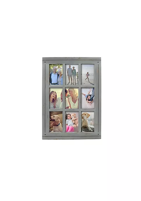 Homestead Distressed Wood Distressed Gray 9-Opening Collage Picture Frame, for 4″ x 6″ Photos, Wall Display