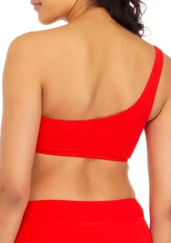 Coupon 💯 Cabana by Crown & Ivy™ Solid Pucker One Shoulder Swim Top ✨